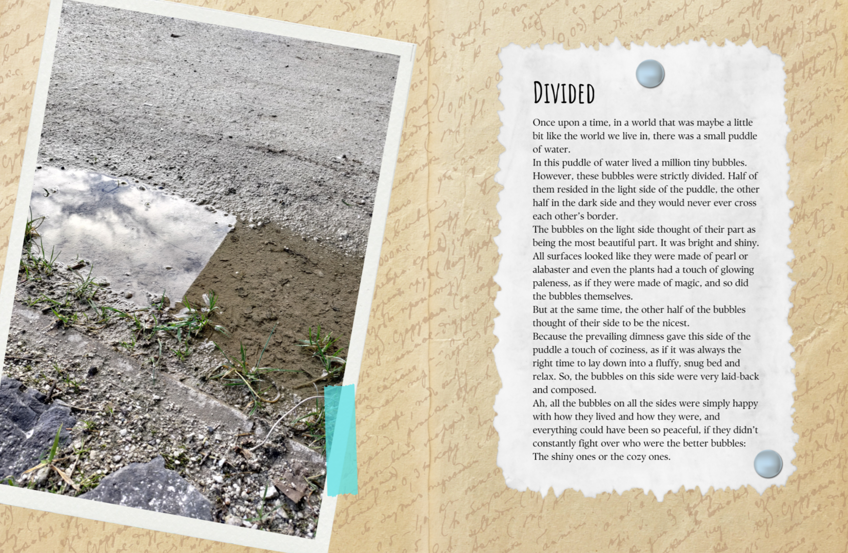 Write on Sight! invites you to keep an eye out for the hidden wonders of life. It’s like stepping into a world of imagination through humorous and exciting writing prompts in the form of photos of nature’s little marvels. From three buds on a twig called the Buddies and washed-out road markings of invisible people to guessing whose green grass hair is growing out of a drain cover, this book encourages not only children to see the magic in the smallest details.